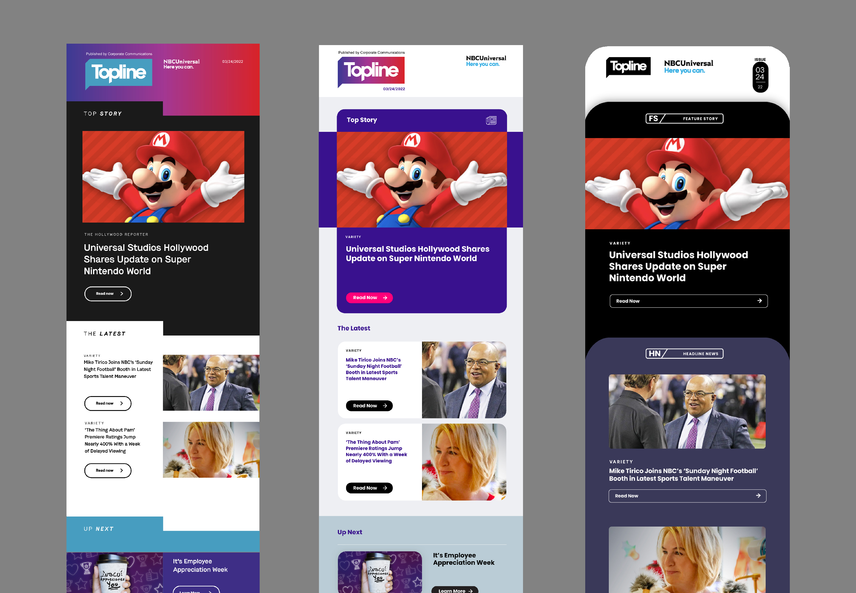 In collaboration with NBCUniversal's Corporate Communications, I directed the team tasked with enhancing employee communication regarding corporate business, events, and entertainment news.