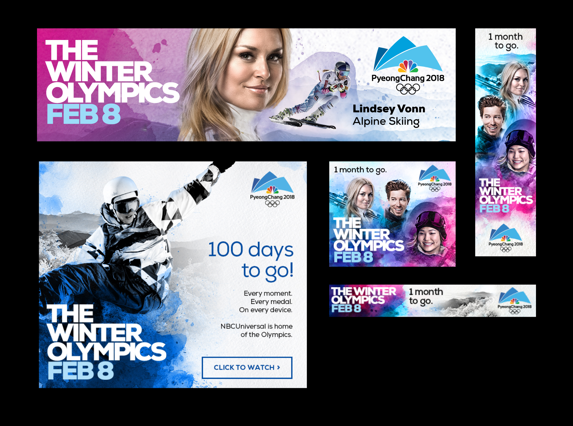 To promote the summer and winter olympics, a digital ad campaign, as well as digital email marketing, was required. Original key art direction provided by Joelle Lau and David Villouta.