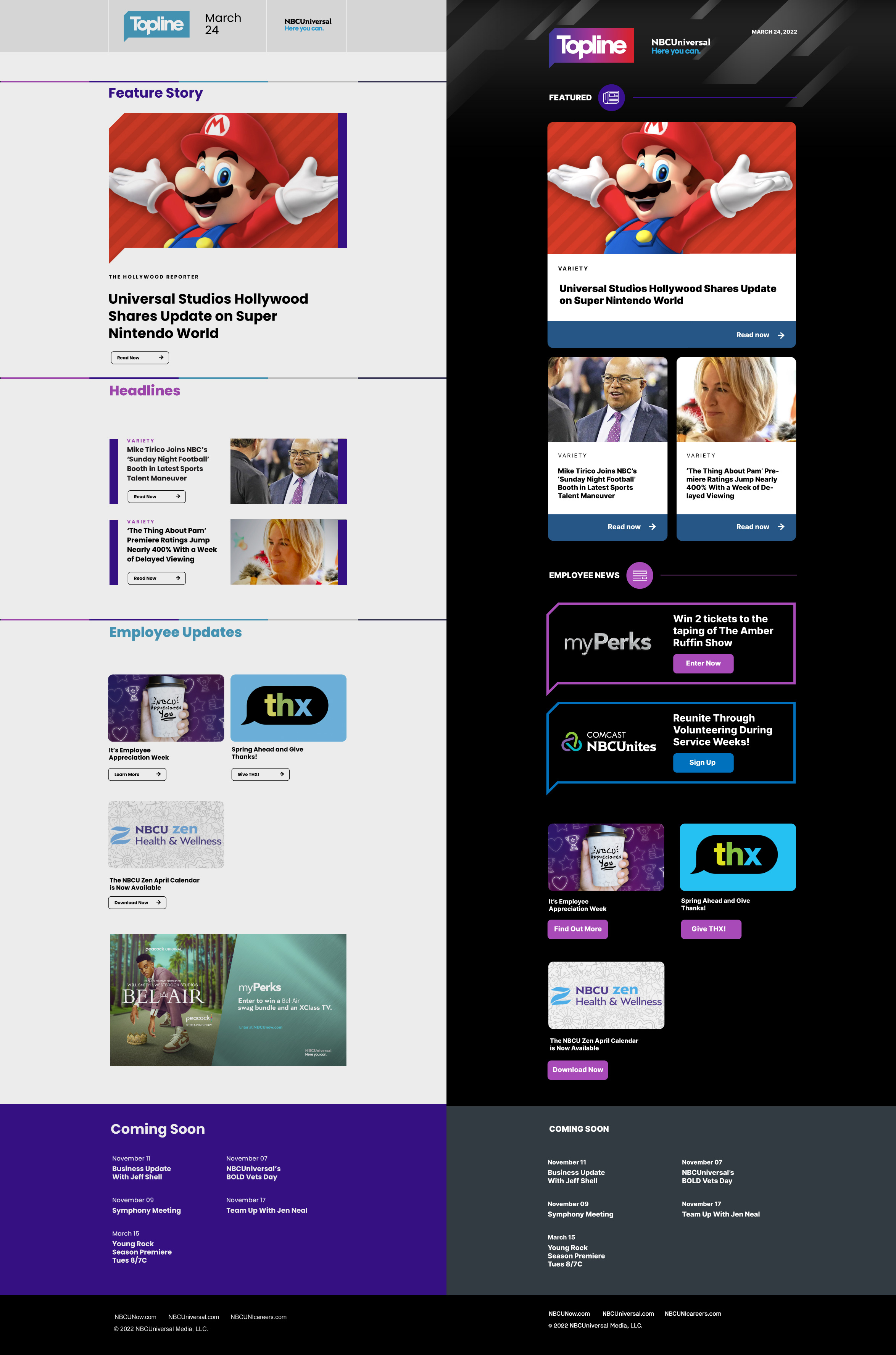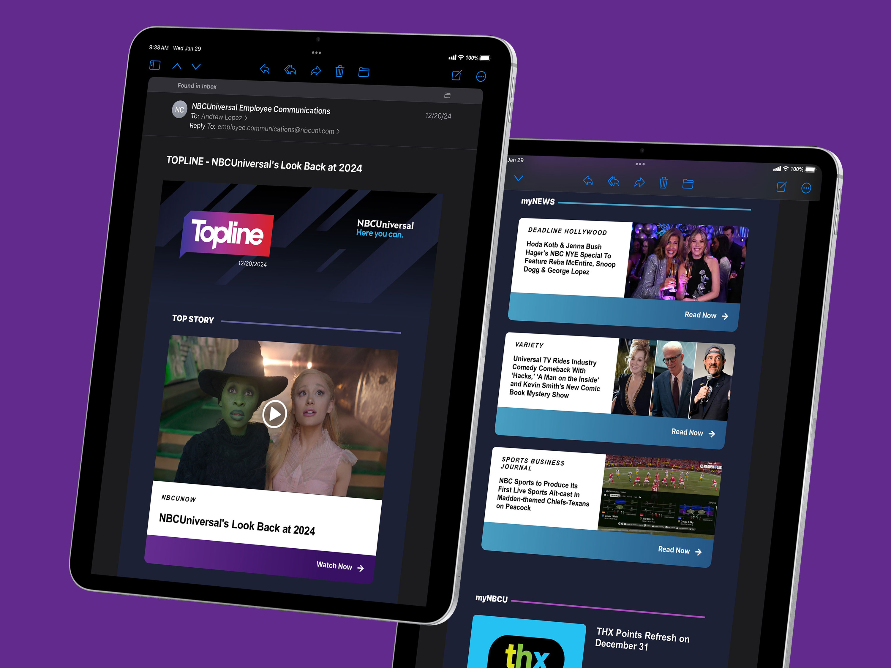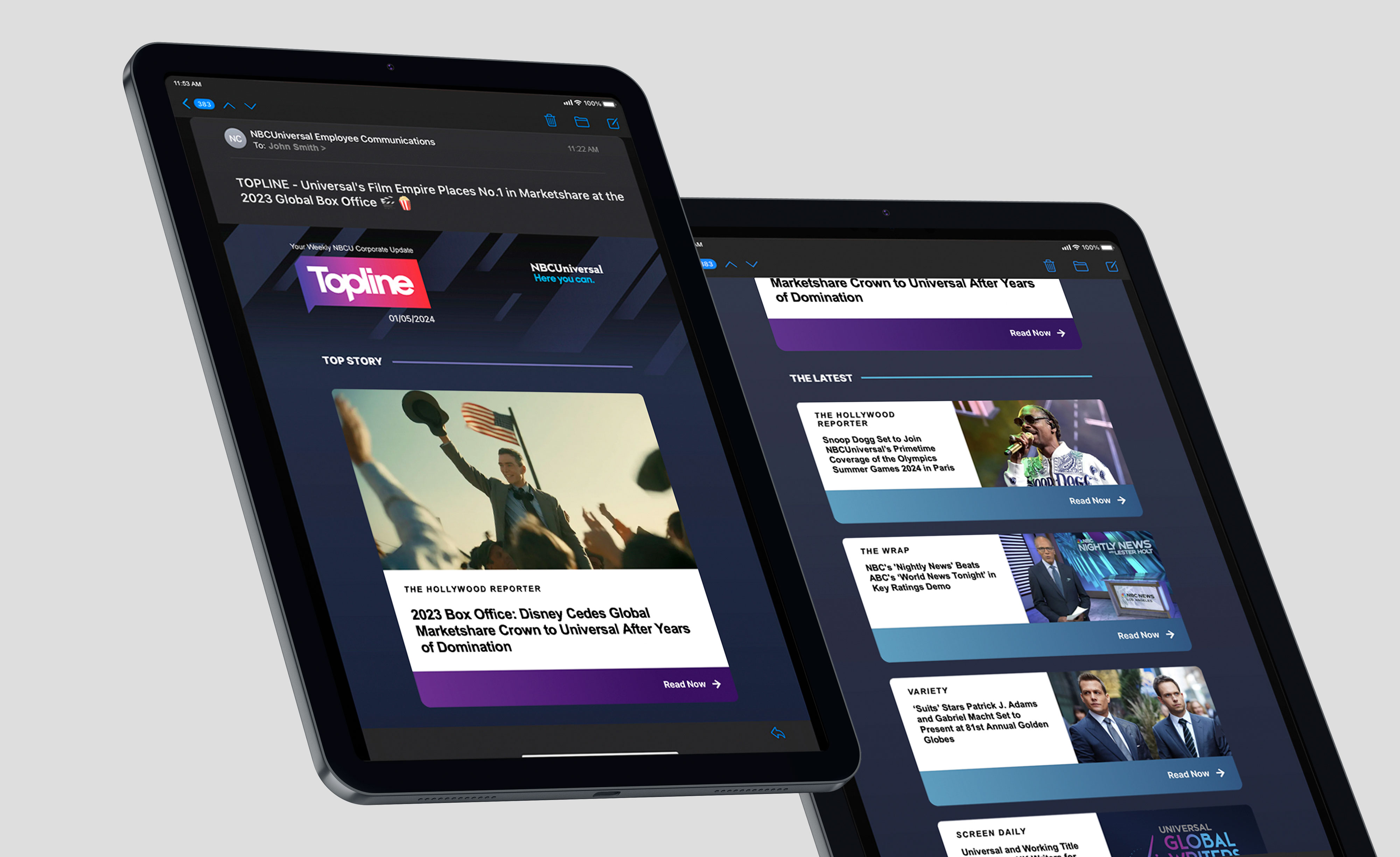 In collaboration with NBCUniversal's Corporate Communications, I directed the team tasked with enhancing employee communication regarding corporate business, events, and entertainment news.